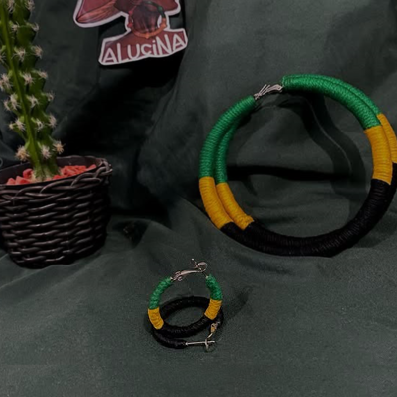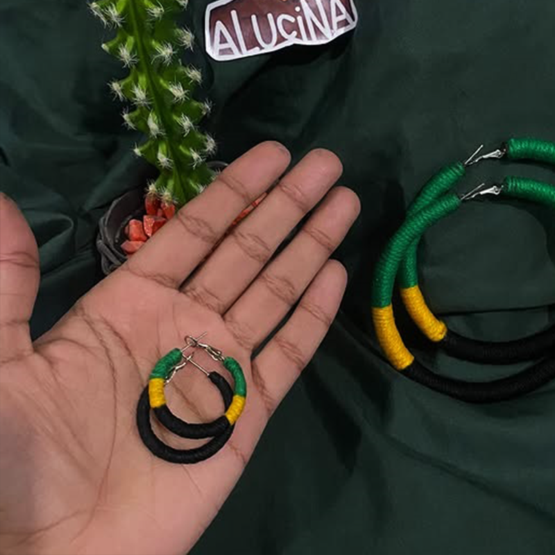 a argola inspirada na bandeira da Jamaica é uma das mais especiais na loja, pois cada detalhe foi fielmente considerado, para entregar de fato a representação dessas cores, e desde 2021 segue batente recorde de venda pelo seu significado e beleza .