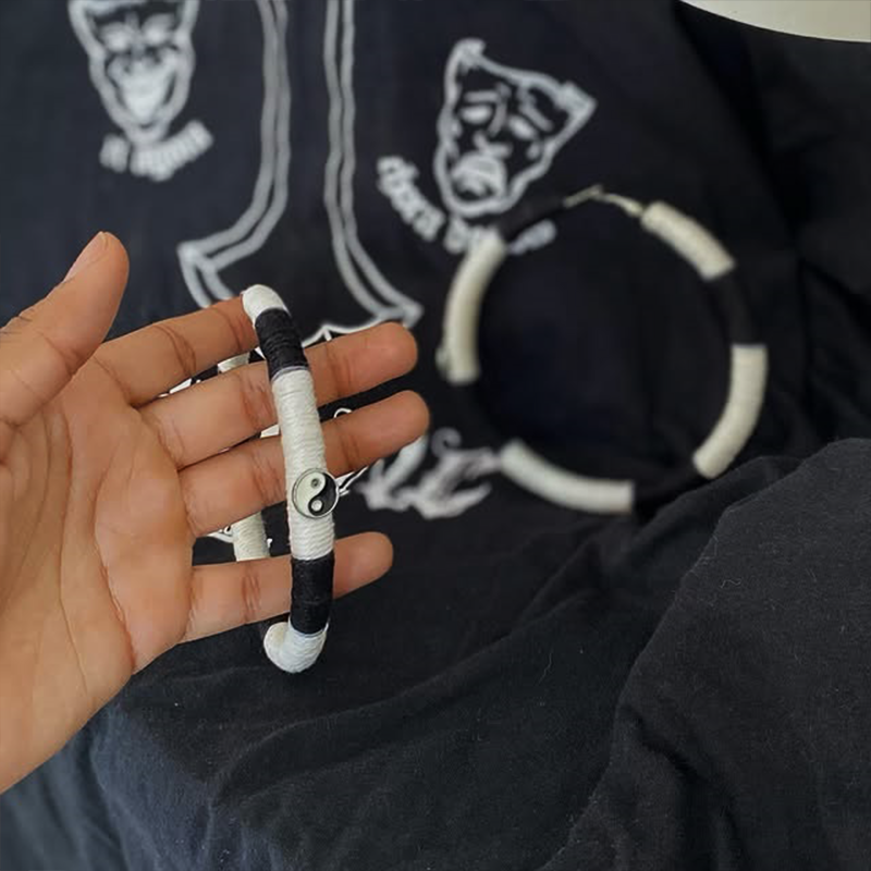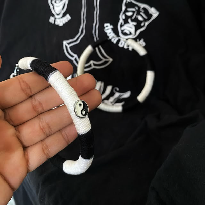 O contraste entre o preto e o branco ganha ainda mais destaque nessa textura, realçando a presença do **Yin-Yang** como símbolo de equilíbrio e autenticidade.